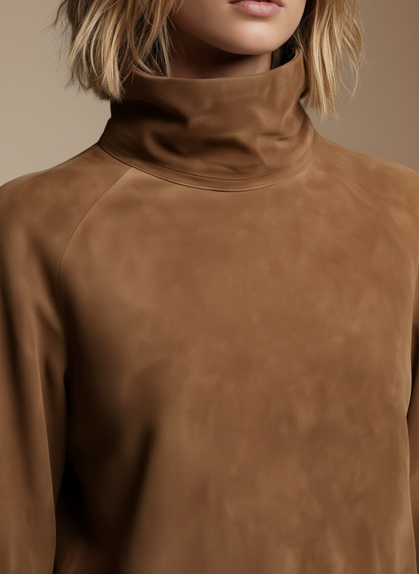 Bellevie Vintage Suede Turtleneck Mini Dress