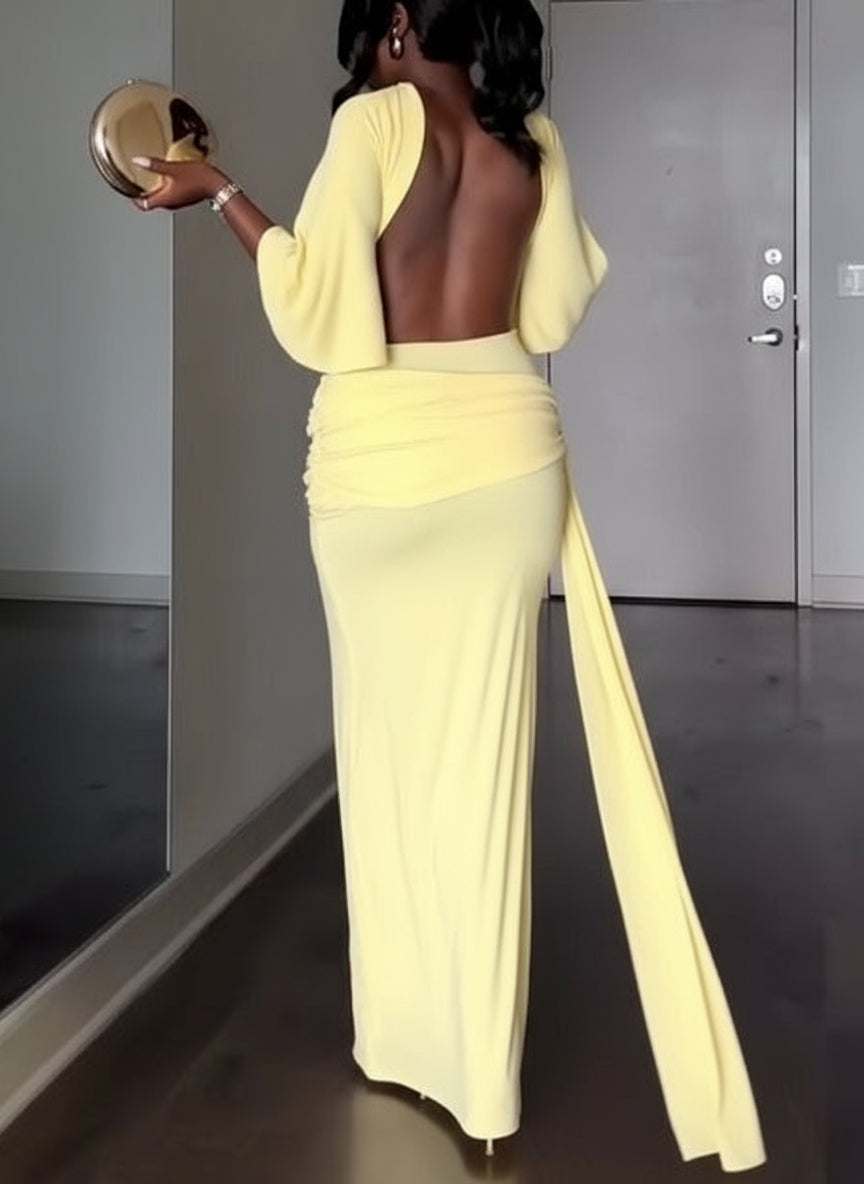 Donella Yellow Cape Backless Maxi Dress