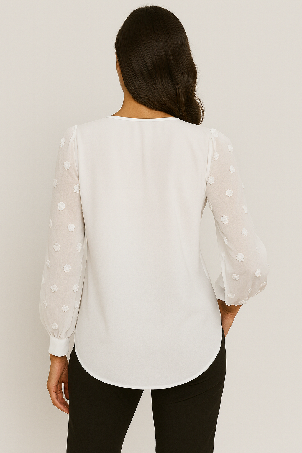 The Sabrielle Elegant Lantern Sleeve presents a sophisticated design through its chiffon fabric and voluminous lantern sleeves and structured collar. The semi-sheer fabric of this lightweight blouse creates a beautiful drape that adds elegance to your outfit while maintaining professional office style. The blouse maintains a structured design which allows it to move seamlessly between office hours and dinner events.